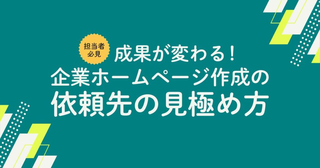 【担当者必見】成果が変わる!企業ホームページ作成の依頼先の見極め方
